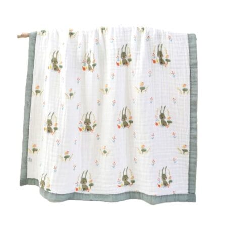 Pătură/Prosop REDQUIT, Bebeluș 6 Straturi, 100% Bumbac, 110×110 cm, Iepurasi, Gri